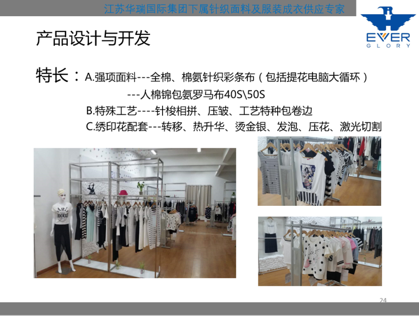 特长:A.强项面料---全棉、棉氨针织彩条布(包括提花电脑大循环)