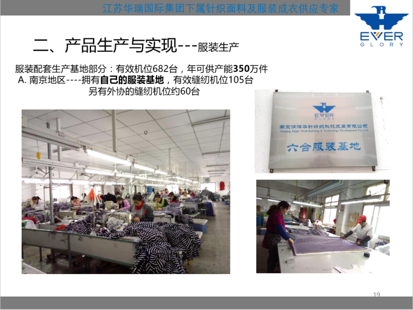 服装配套生产基地部分:有效机位682台,年可供产能350万件