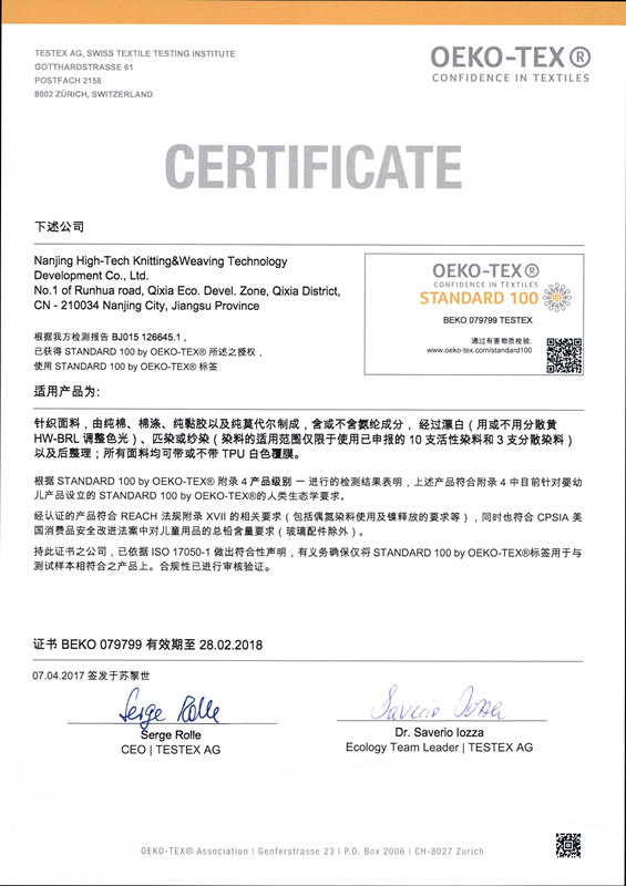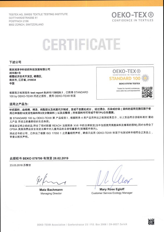 Oeko-Tex证书2018中文版英文抬头(更新)