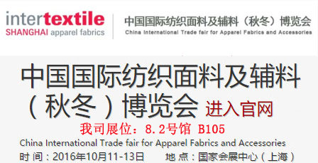 2016中国国际纺织面料及辅料(秋冬)博览会 我司展位:8.2号馆 B105